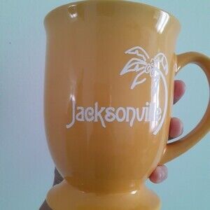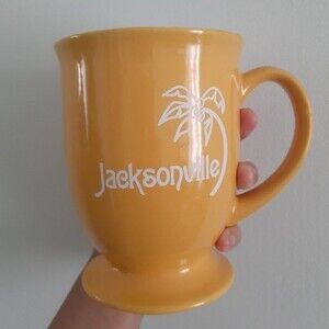 Jacksonville Florida Palm Prints Paradise Pedestal Mud Yellow Mug Approx.15Oz