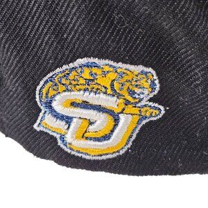 Stylish Jaguar Nation Baseball Hat with adjustable snapback for a perfect fit. The Zephyr cap features a sleek black and blue design, perfect for casual wear or game day.