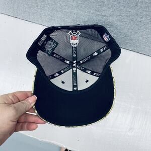 Official team hat featuring a camouflage digital print brim, mesh back, and snap back closure for adjustable fit.