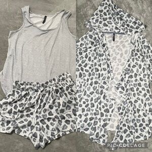 Jaclyn Intimates 3 Piece Pajama Set- Robe, Tanktop, Shorts. Small Stain on Shorts. Size Small.