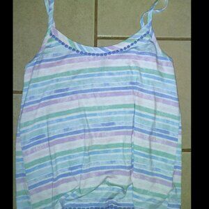 Jaclyn Intimates Pajama Set Shorts Tank Top Size Medium Striped Polyester Spandex Blend.