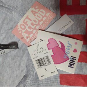 The Jaclyn Intimates Pajama Top Shirt in gray, size L, is a comfortable and lightweight option for summer and spring nights. Made from a blend of polyester and spandex, this top features a crew neck and short sleeves, making it easy to wear and care for with its machine washable fabric. Perfect for lounging around the house or getting a good night's sleep, this pajama top from the trusted brand Jaclyn Intimates is a stylish and practical addition to any woman's sleepwear collection.