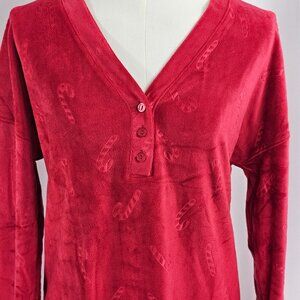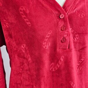 Jaclyn Intimates Plush Red Candy Cane Embossed Velour Henley Pajama Top