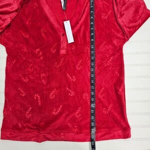 Jaclyn Intimates Plush Red Candy Cane Embossed Henley Pajama Top Size S NWT