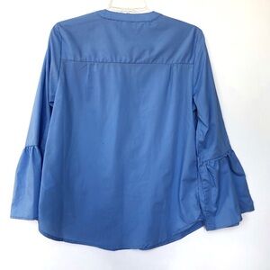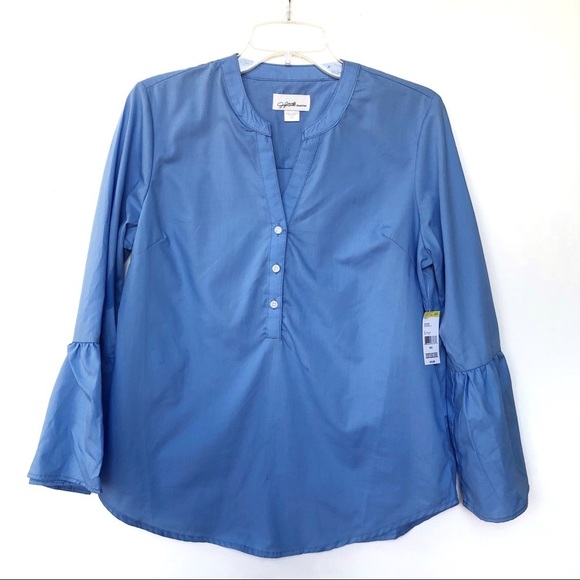 Jaclyn Smith Bell Sleeve Popover Blouse Blue NWT S
