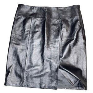 Jaclyn Smith Black 100% Soft Leather Split Mini Side Zip Plus Size Skirt 18