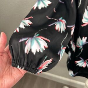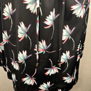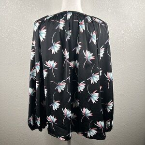 Jaclyn Smith Black Floral Boho V-Neck Long Sleeve Top Size XL