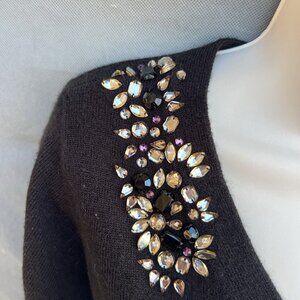 Jaclyn Smith Black Rhinestone Sweater Pullover Size S V-Neck Long Sleeves