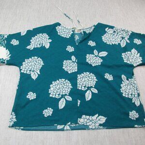 Jaclyn Smith Blouse Top Womens XL Teal Palm Leaf Print Short Sleeve Round Neck.