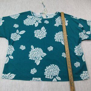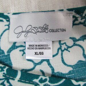 Jaclyn Smith Blouse Top Womens XL Teal Palm Leaf Print Short Sleeve Round Neck