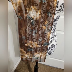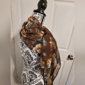 Beautiful scarf. Made in Italy. Beautiful gold threads running through it. Lightweight and flowy. Made with polyester materials.