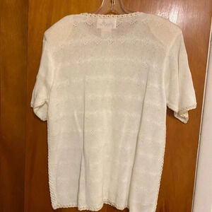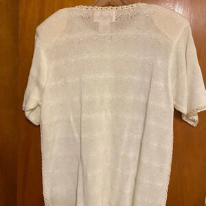 Jaclyn Smith Cardigan Crochet Floral Print Short Sleeve Top Size M