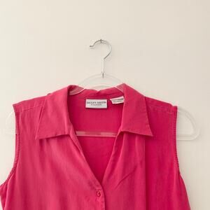 Jaclyn Smith Classic Hot Pink Sleeveless Collared Blouse Silk Medium