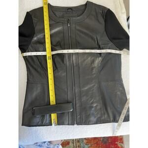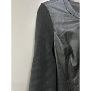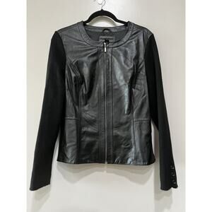 Jaclyn Smith Classic Transitional Black leather Ribbed knit light Jacket Large