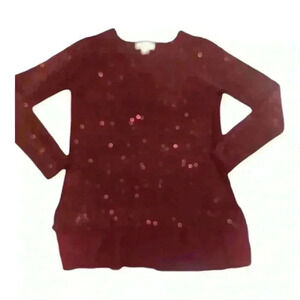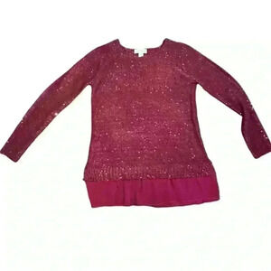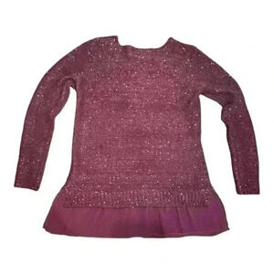 Jaclyn Smith Collection Burgundy Sparkle Sweater with Ruffle Hem, Size S