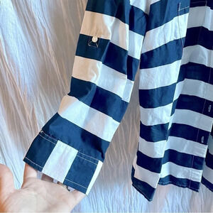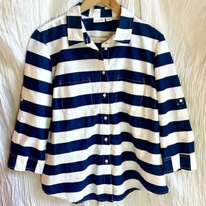 Jaclyn Smith Collection Navy Striped Button Down 3/4 Sleeve Top, LG