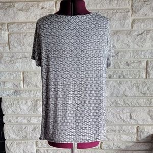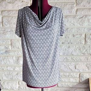 Jaclyn Smith Gray/White Cowl Neck featuring diamond-like pattern (gray/black/white). Short sleeved.