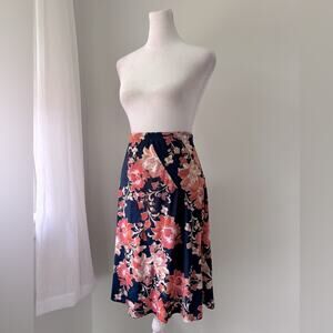 Jaclyn Smith Navy Blue & Pink Floral Print Lightweight Stretch Knee Length Skirt