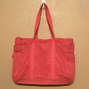 Jaclyn Smith Pink Mesh Tote Bag Side Pockets Drawstring Velcro Closure