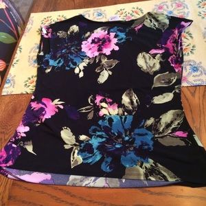 Jaclyn Smith shirt size L. Black shirt with bright colored flowers