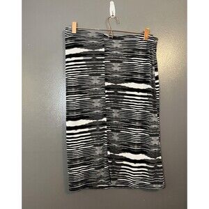 Jaclyn Smith Skirt Womens Medium Black White Knit Stretch Pencil Midi Pull On
