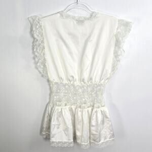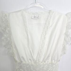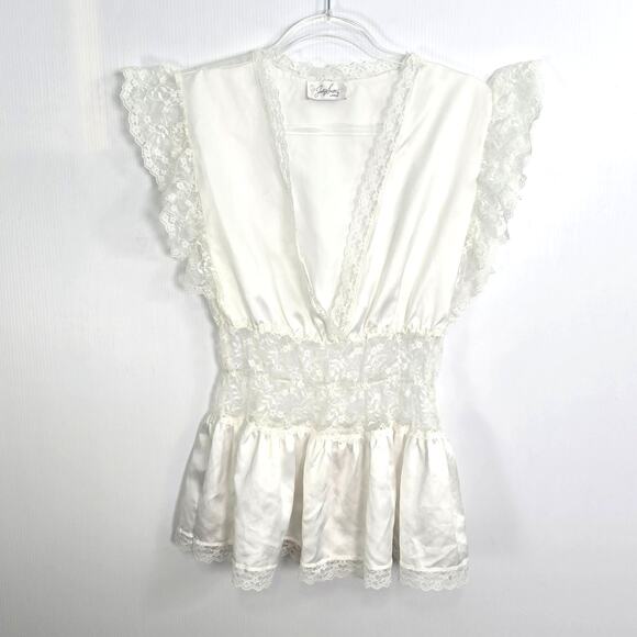 Jaclyn Smith Vintage 90s Satin Lace Lingerie Top Off White Sheer Waist Large