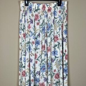 Jaclyn Smith Vintage Cream Blue Pleated Floral Midi Pull On Skirt; Size 16P