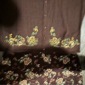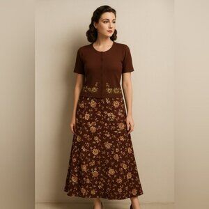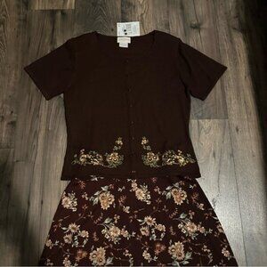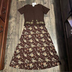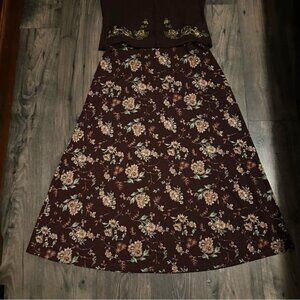 Jaclyn Smith Vintage Floral Two-Piece Set Brown Top M Maxi Skirt L Cottagecore
