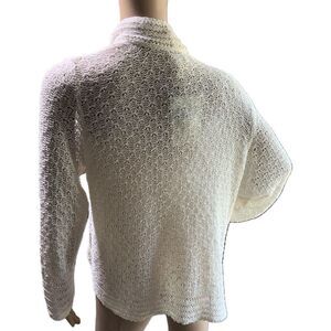 Jaclyn Smith White Long Sleeve Knit Open Front Cottage Cardigan Sweater Large