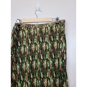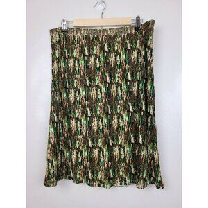 Jaclyn Smith Womens A LIne Midi Skirt Large Green Printed Pull On BOHO Casual
