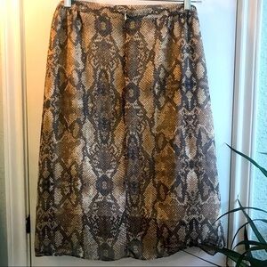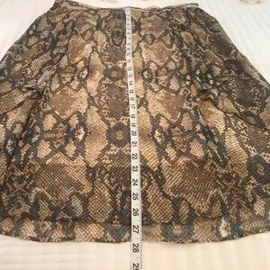 Jaclyn Smith snakeskin skirt, beautiful ruffle on front sides, hidden zipper in back, fully lined, 100% polyester, in excellent condition.