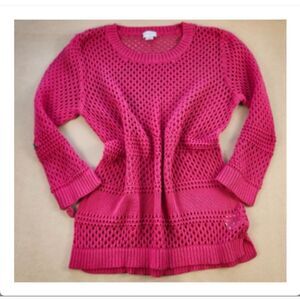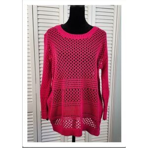 Jaclyn Smith XXL Hot Pink Open Knit Sweater Mesh Stretch Sheer Beachy Cover