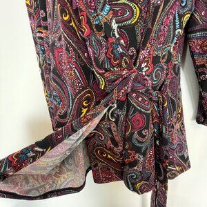 Jaclyn Smith XXL Womens Wrap Blouse Purple Paisley Pattern Whimsigoth