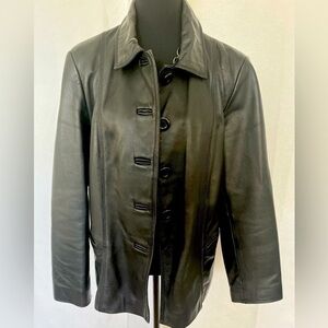 Jacket’s in good condition. Jaclyn Smith black leather jacket with front pockets. Size L