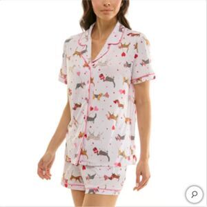 Jaclyn Womens Valentines Day Pajama Set 3-Piece Notch Collar PJ Sleepwear Hearts