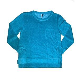 Mulane fair isle white prism pink two piece pajama set. Long sleeve top. Crewneck. Left chest pocket. Side slit hem. Printed bottoms with drawstring waist. Side pockets. Banded hem. 95% polyester/5% spandex. Size: small. NWT.