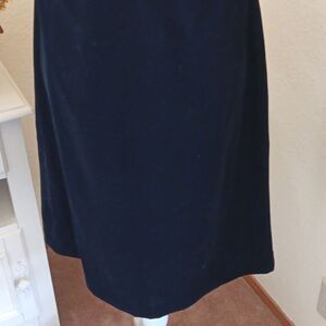 A classic velvet dress. Pretty draped neck. Fully lined , back zip. Slightly "A" shaped skirt. Size 8 measures 36 at chest. 32 at waist, 38 at hips. 50 at bottom hem. 39 long from shoulder to hem. It's beautiful and a forever look at a wonderful price.