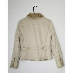 Jacob Connexion Tan Jacket Fur Trim Pockets Size M