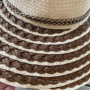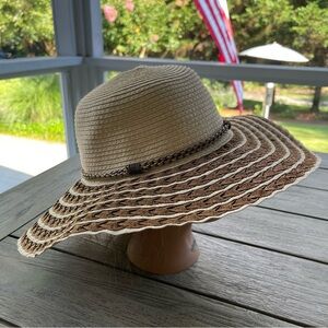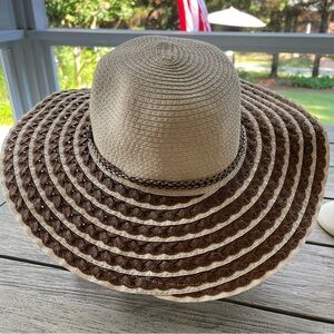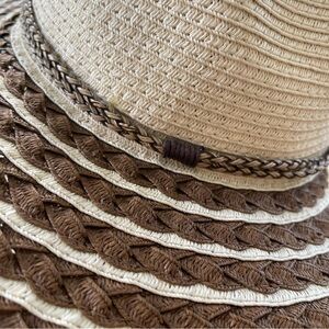 Chic wide brim hat with a two-tone design. Perfect for sunny days.
