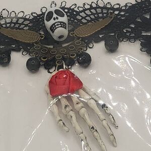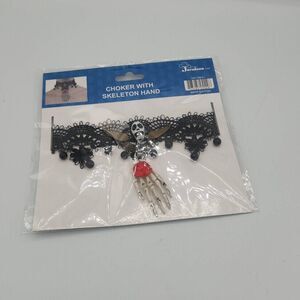 Jacobson Hat Halloween Black Lace Choker With Skeleton Hand