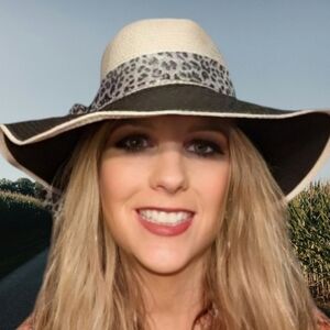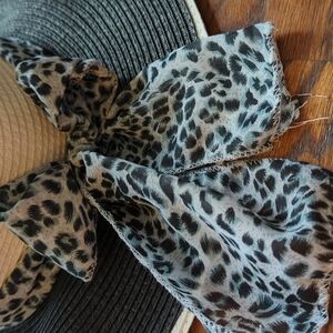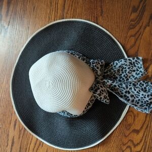 Jacobson Hat Navy and off white White Lotus wide straw brim Animal Print band