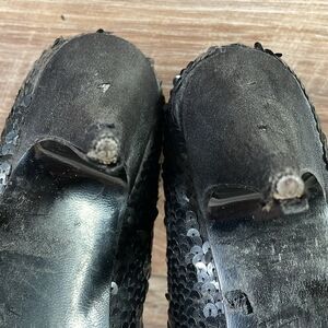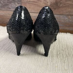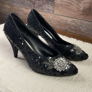 Jacqie Vintage Black Sequined High Heels, Black and Silver, Size 7