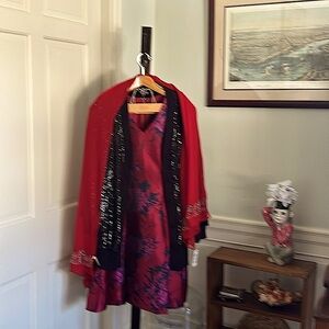 Winter Jacquard Floral Dress Red Pink Navy Dry Cleaned Like New