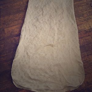Rarely worn duress, pull over (no buttons or zippers). Very light weight material perfect for the summer. White dress with gold detailing. Comes to below the knee (midi dress)