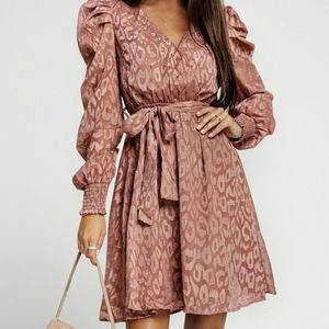 Jacquard Animal Print Faux Wrap Dress