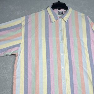 Up for sale: Jacque & KoKo Pastel Stripes Button Up Shirt Mens XL Cotton Collared Oxford