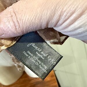 Elegant sheer scarf with a floral design. Features shades of brown and tan.