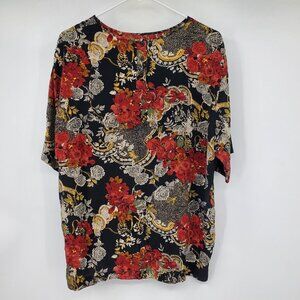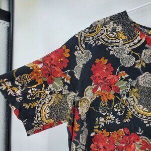 Jacqueline Ferrar 100% Silk Short Sleeve Rose Floral Pattern Blouse Shirt 14