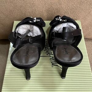 Jacqueline Ferrar Black Satin Slingback Heels With Rhinestone Bow, Never Worn,