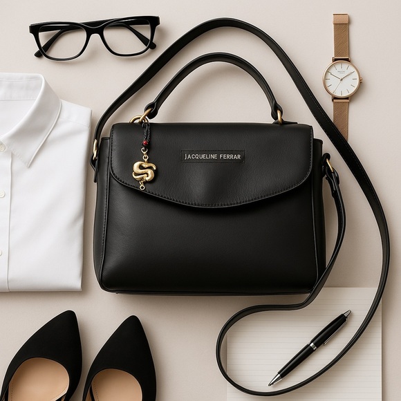 Jacqueline Ferrar Black Leather Crossbody Shoulder Bag